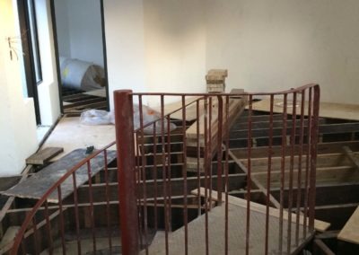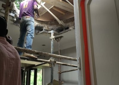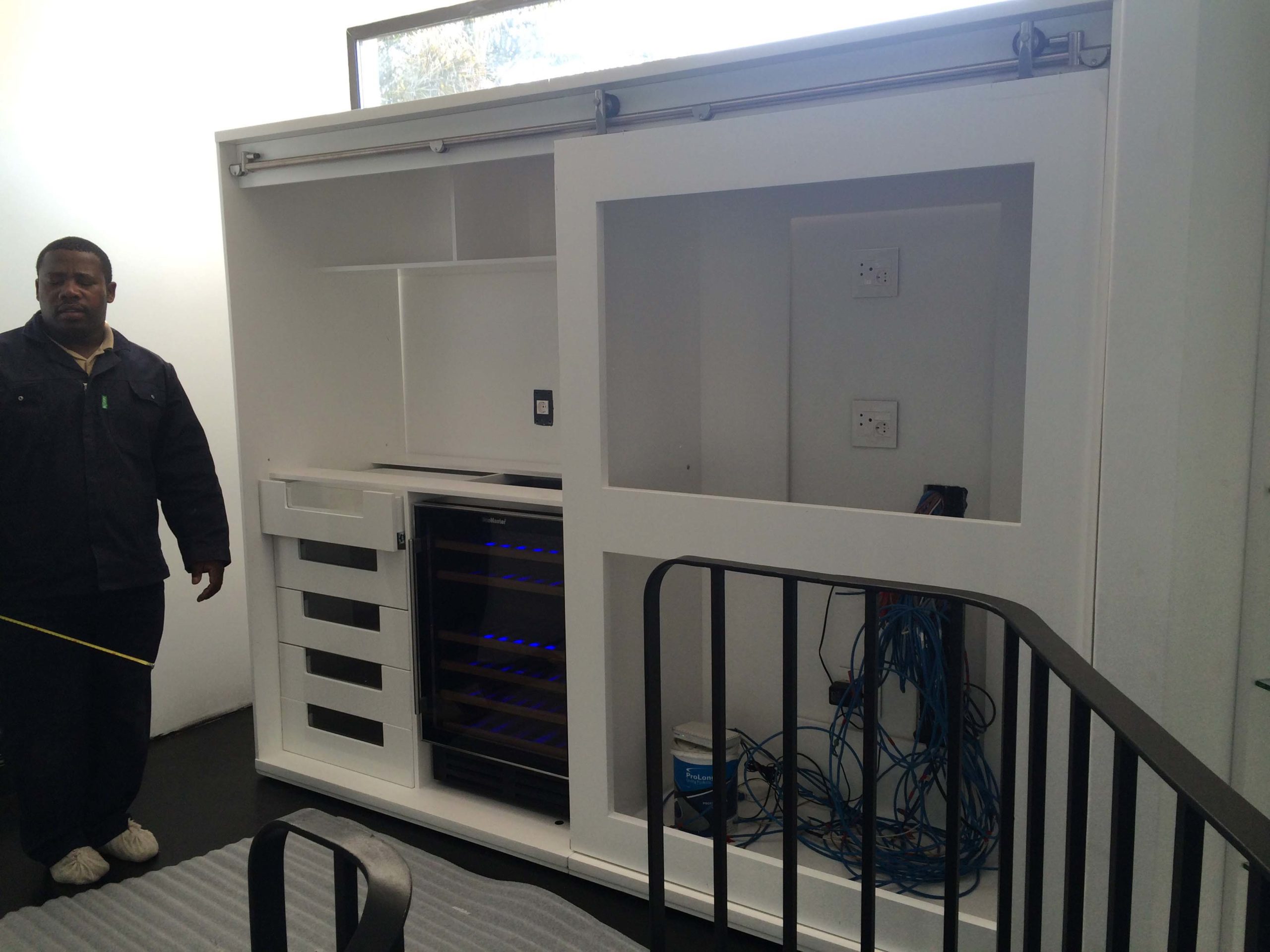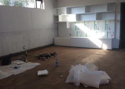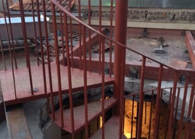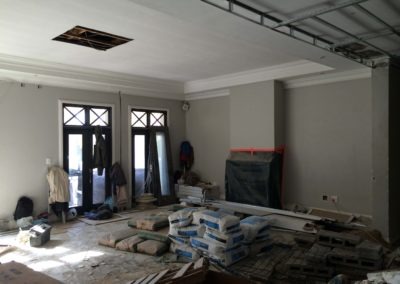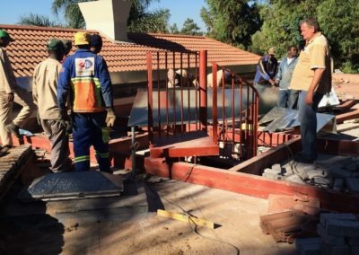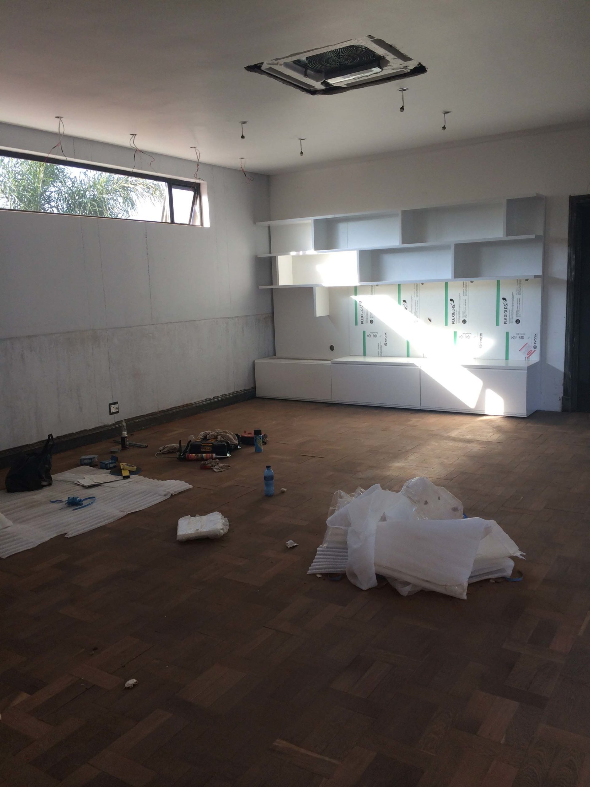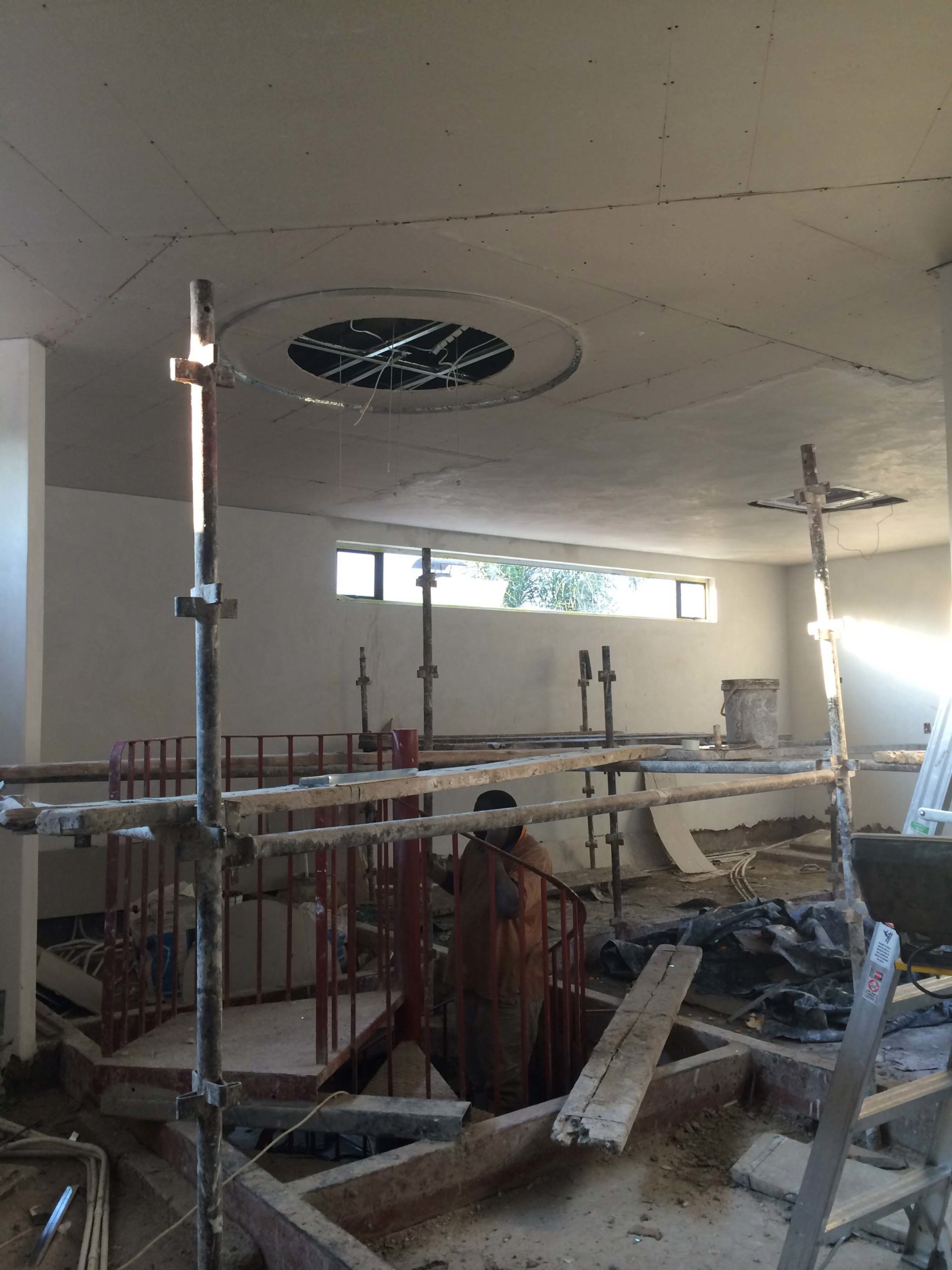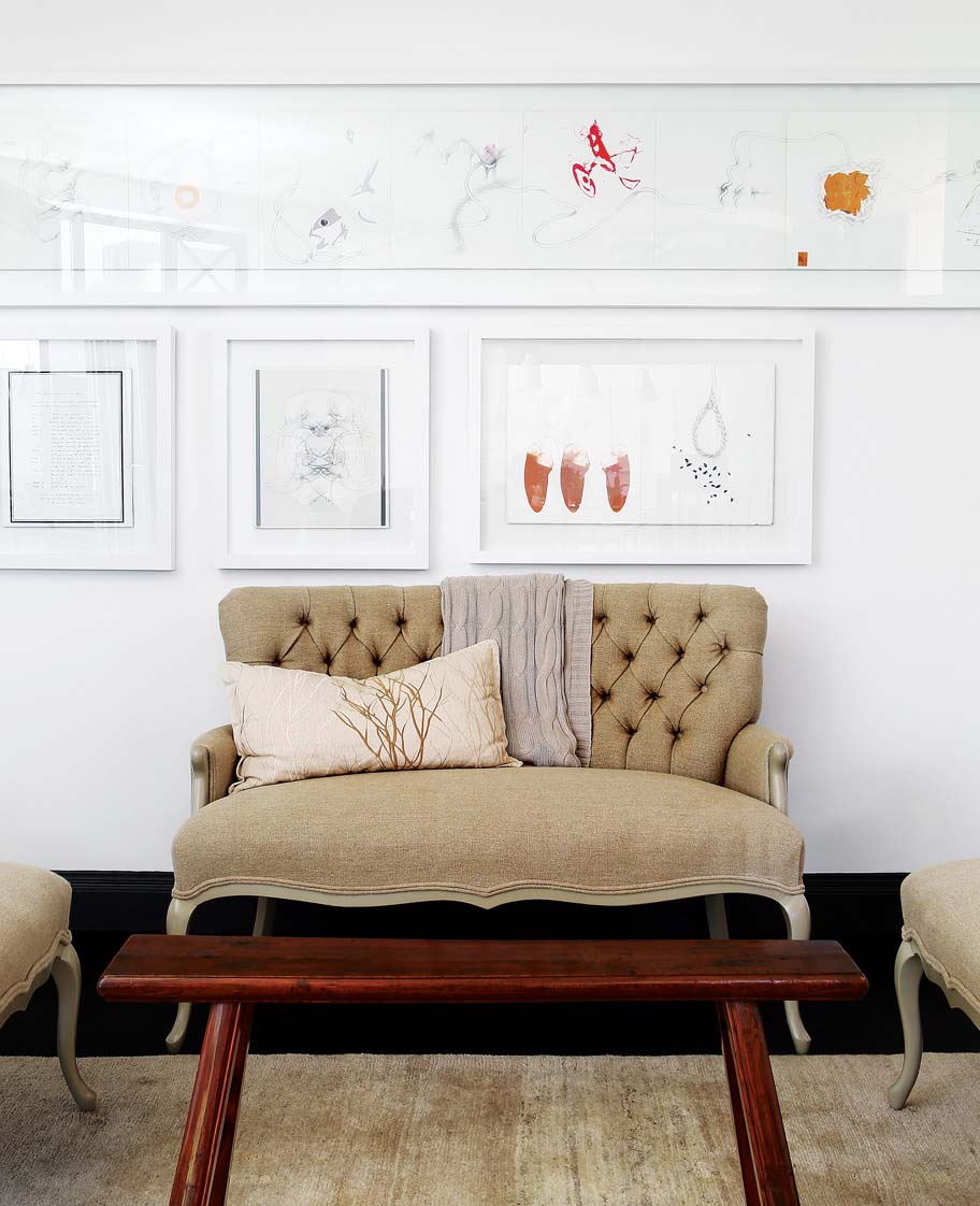 It was treated for rust and cut to size. It is an attractive feature and has worked exceptionally well. It was fortunate that the diameter was generous although we still ended up hoisting larger items of furniture up from the outside. The open plan design and floor to ceiling stacking doors, to the exterior, create a flow of energy that inspires those working in this space. A contrast of colours was used to create a dramatic effect enhancing the eclectic art collection and creating a New York apartment look and feel.