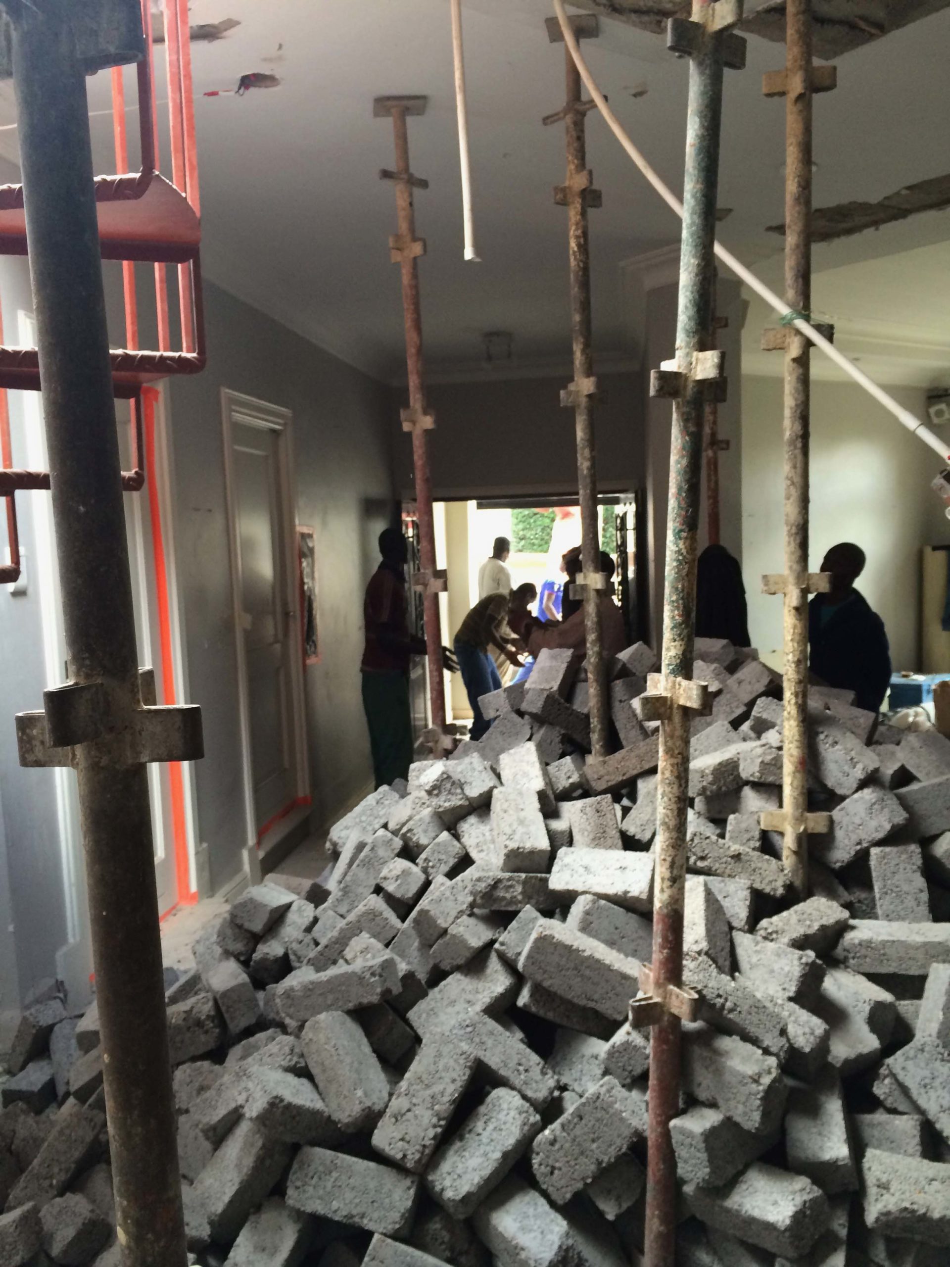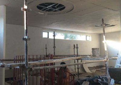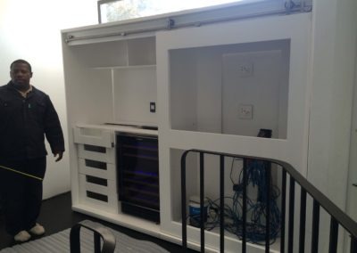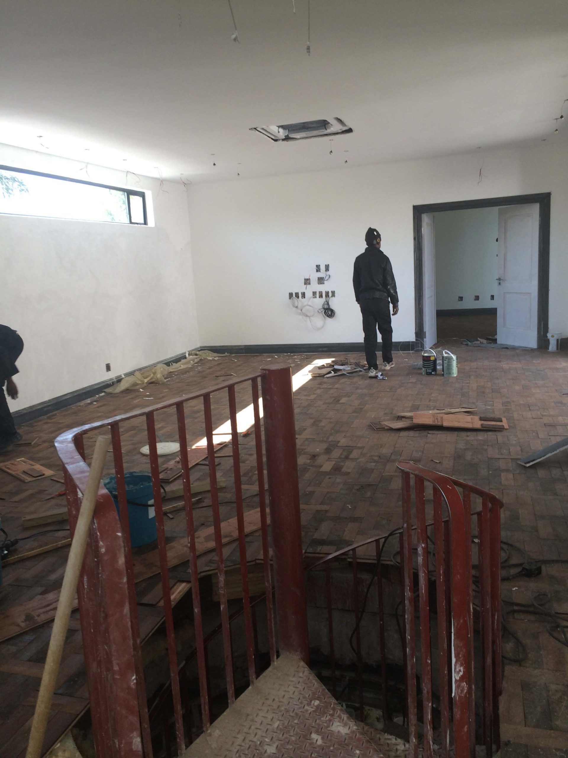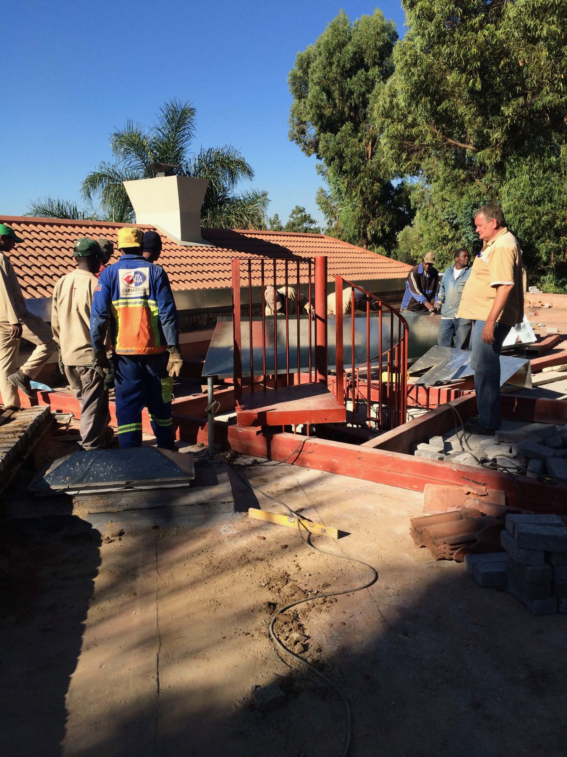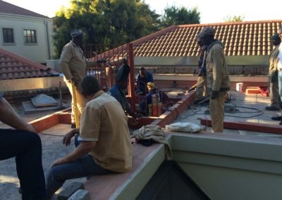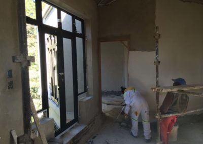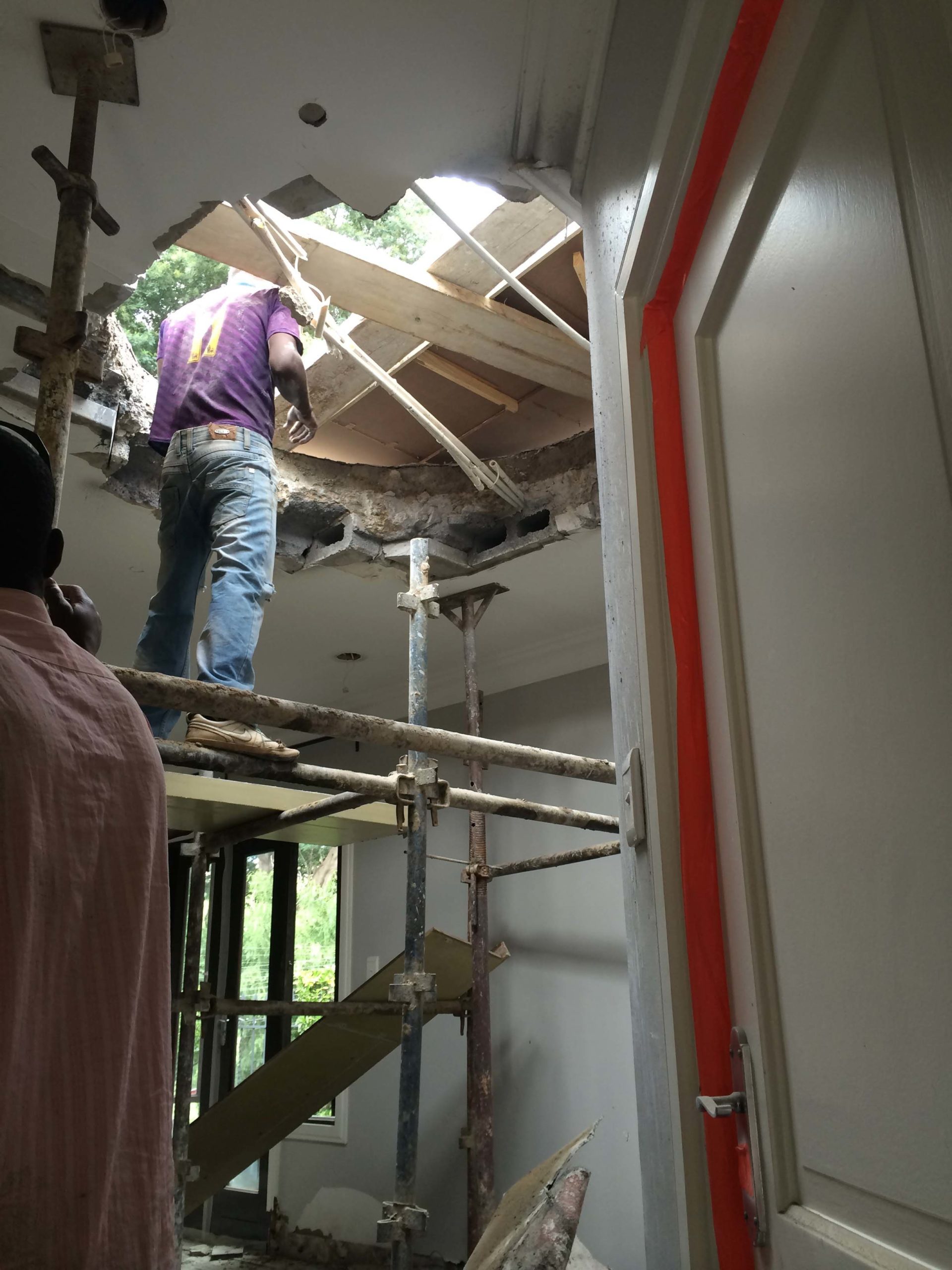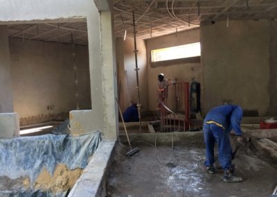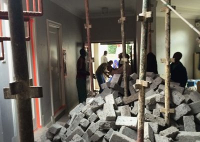 It was treated for rust and cut to size. It is an attractive feature and has worked exceptionally well. It was fortunate that the diameter was generous although we still ended up hoisting larger items of furniture up from the outside. The open plan design and floor to ceiling stacking doors, to the exterior, create a flow of energy that inspires those working in this space. A contrast of colours was used to create a dramatic effect enhancing the eclectic art collection and creating a New York apartment look and feel.