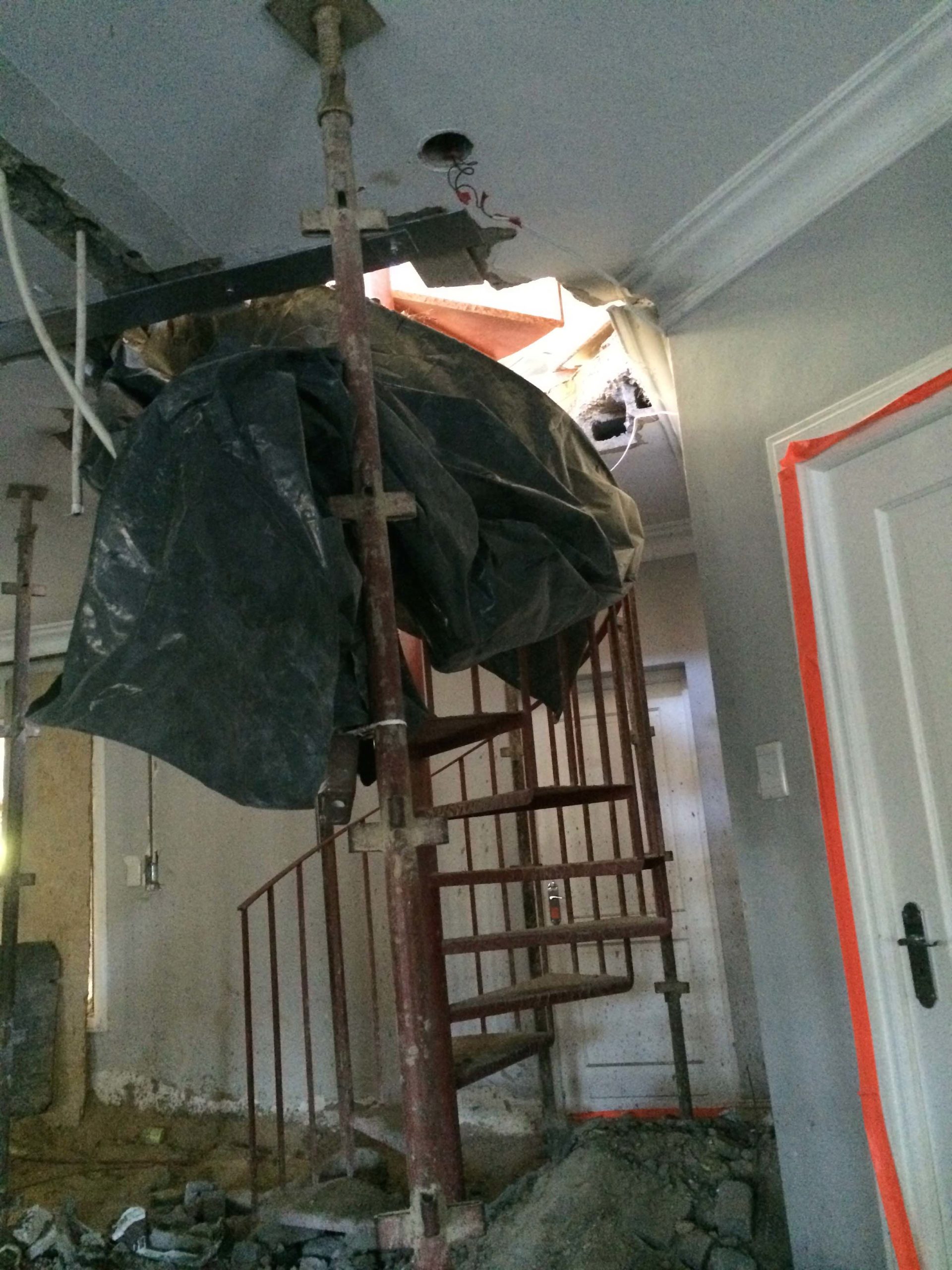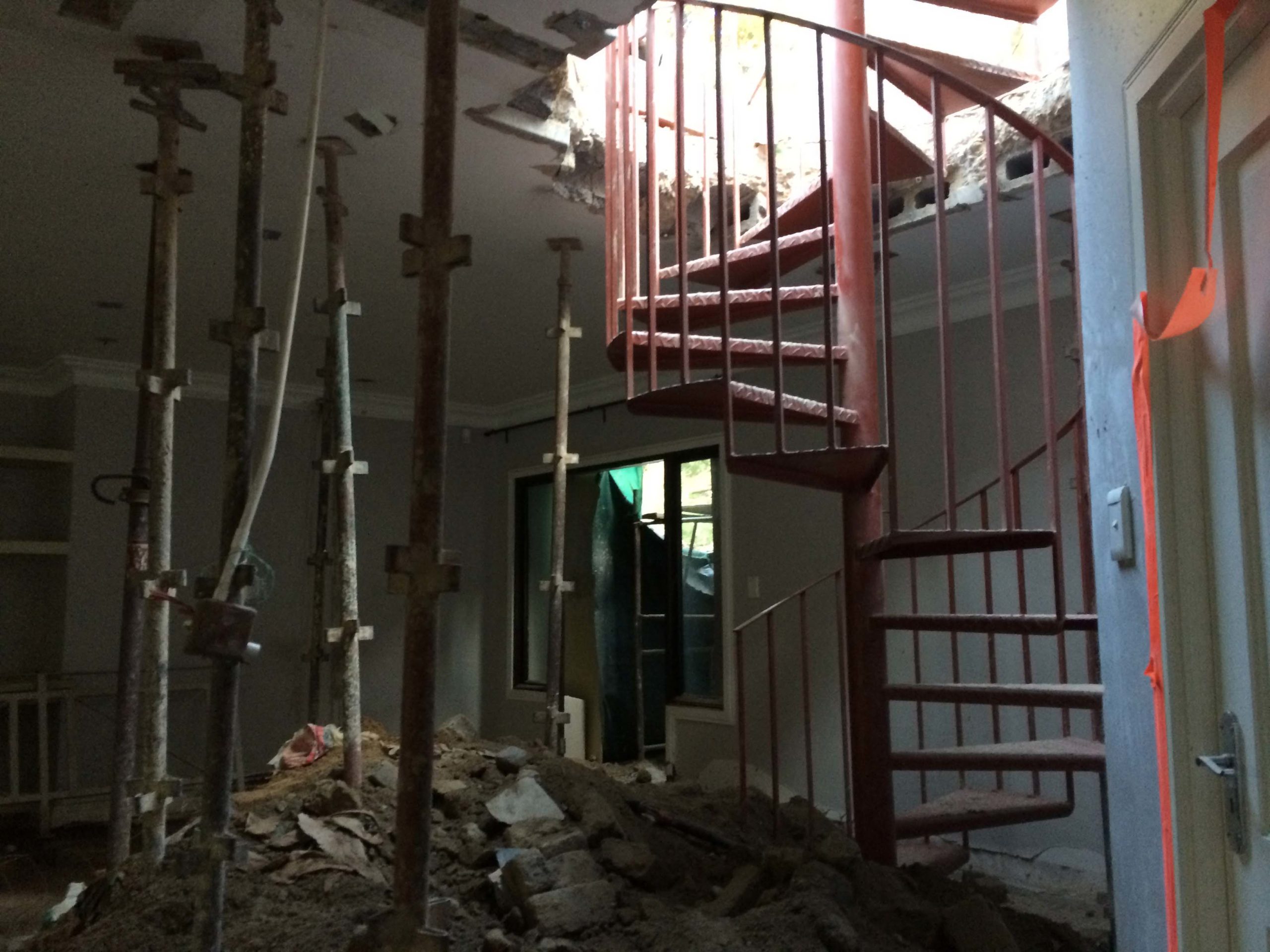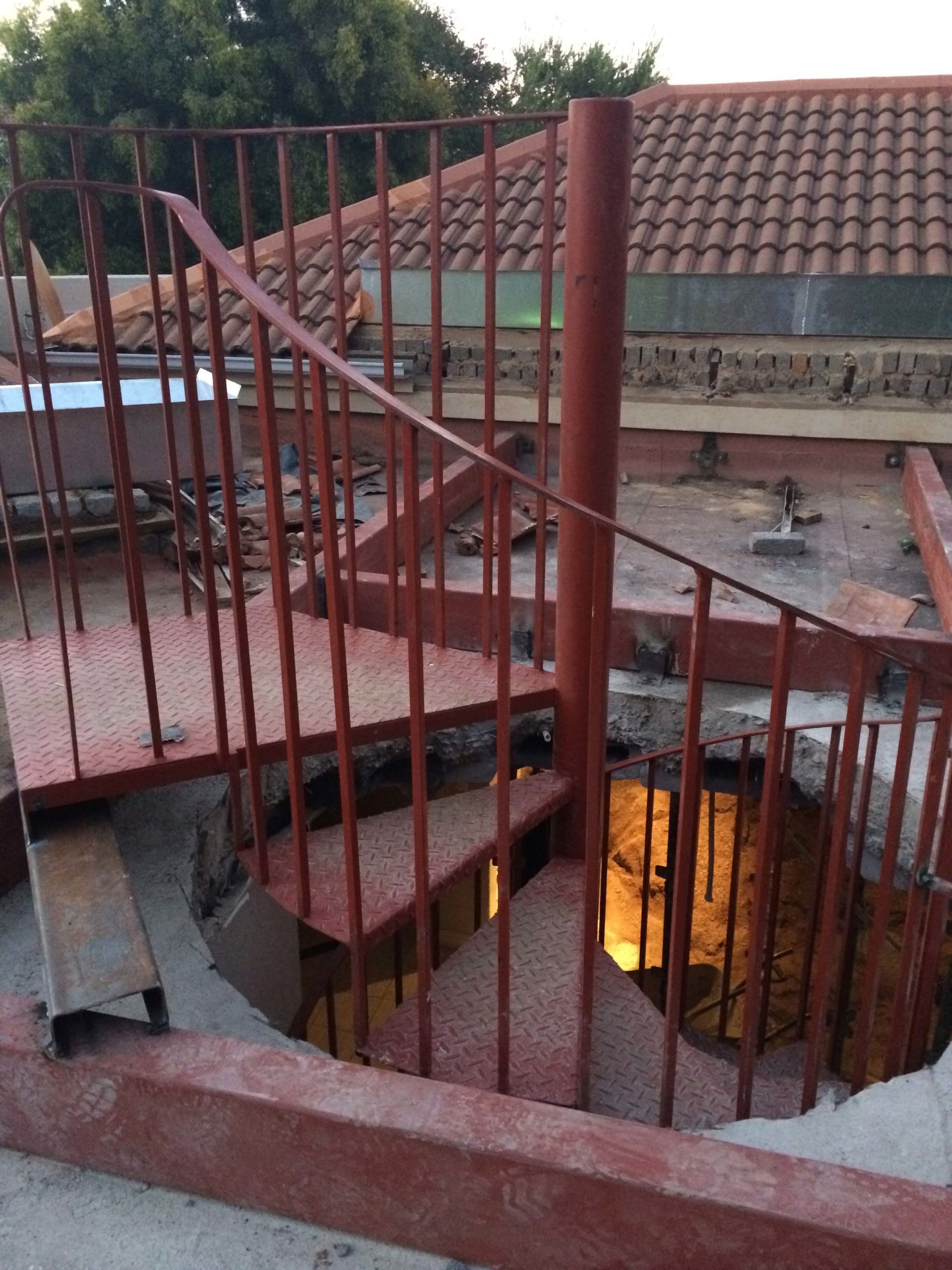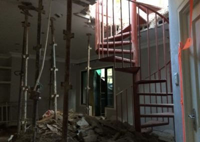 The brief was to create a new work from home space. The client had worked from home for years and now wanted to create a separate office area. The existing home was a single story where 70% of the building was slab; hence the next logical step was to go up. After a lengthy approval period, the renovations started. Due to space restriction downstairs, a spiral staircase was specified that had been salvaged by the client from an old factory 20 years previously.